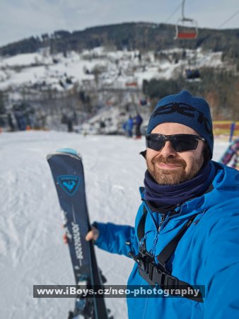 vousatý lyžař se smyslem pro humor vítán...
